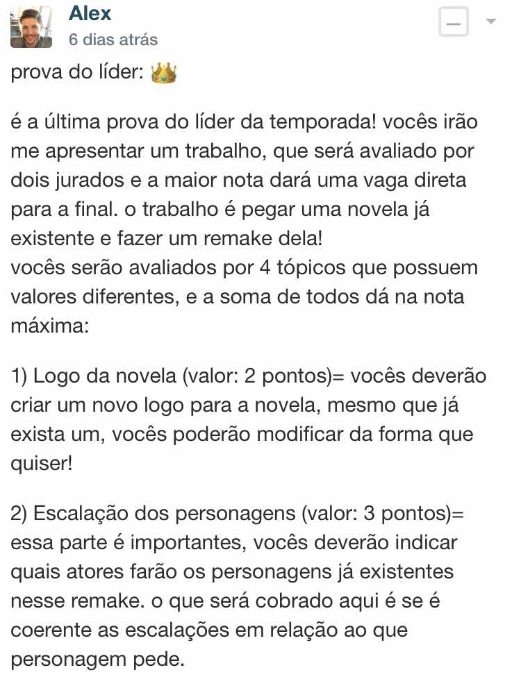 Ao fazer essa prova super trabalhosa, os participantes tiveram um dia e meio para prepararem ela, e eles que lutem!