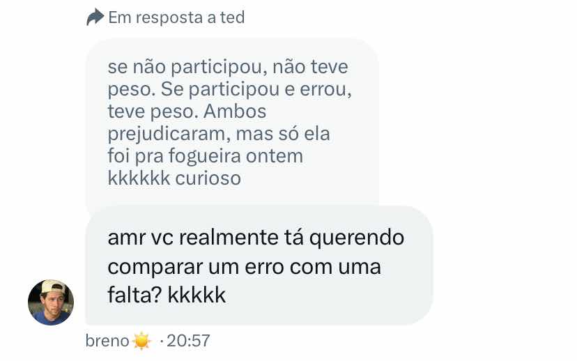 A comemoração no grupo Avenida Brasil acabou rendendo um assunto que se estenderia por diversos dias, a pauta do sumiço de Ágata que acabou não aparecendo no dia da prova. O comentário de Breno e a defesa de Ted foi quem iniciou o contexto: