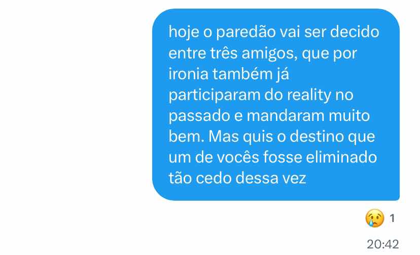 Mas o que rendeu de verdade foi o pós da prova! Ed fez um comentário que não agradou Ted, e isso acabou gerando mais uma briga com Sangue e Persi. Breno também provocou Raffa, e por fim, Vicky e Gabriel trocaram umas farpas, que não passaram de um mal entendido.