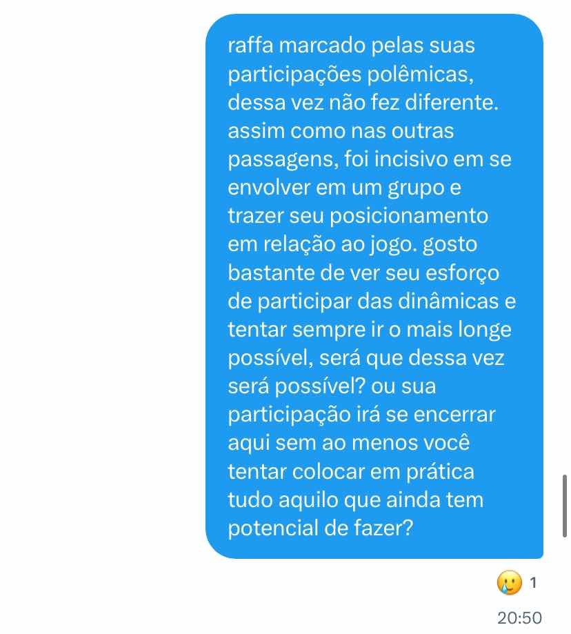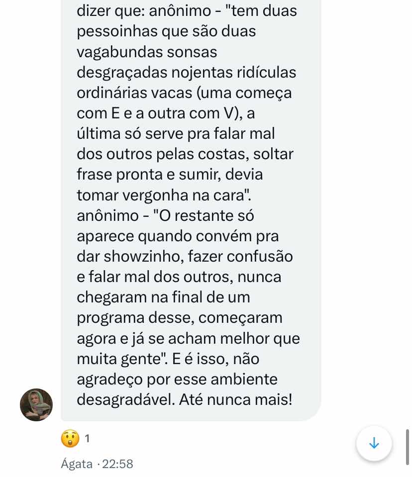 Ágata foi eliminada, mas antes disso deixou um texto de despedida que gerou uma grande repercussão entre os participantes.