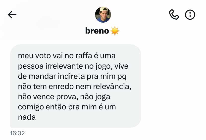 A resposta de Raffa pareceu não agradar muito Breno, que revidou.